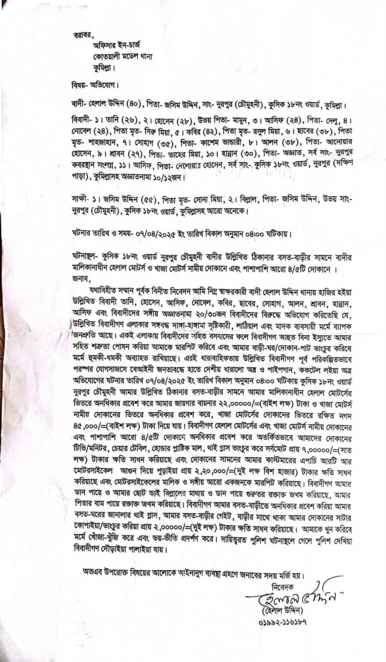 কুমিল্লা নগরীর ১৮ নং ওয়ার্ডের নুরপুর চৌমুহনী এলাকায় বসতভিটা ও দোকানপাটে কিশোর গ্যাংয়ের হামলা, ভাংচুর ও লুটপাটের ঘটনার প্রতিবাদে সংবাদ সম্মেলন অনুষ্ঠিত হয়েছে।