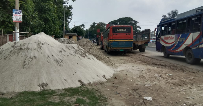 প্রশাসনকে বৃদ্ধাঙ্গুলি দেখিয়ে প্রধান সড়কের উপর অবৈধ বালির ব্যবসা