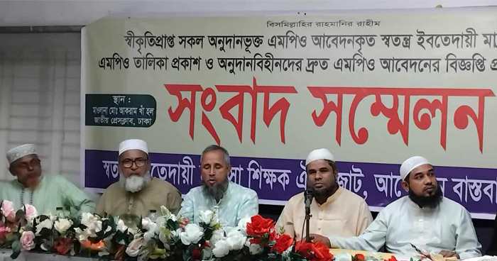 স্বীকৃতিপ্রাপ্ত অনুদানভুক্ত ও অনুদানবিহীন সব স্বতন্ত্র ইবতেদায়ী মাদরাসা পর্যায়ক্রমে জাতীয়করণের দাবি জানিয়েছে স্বতন্ত্র ইবতেদায়ী মাদরাসা শিক্ষক ঐক্যজোট। সংবাদ সম্মেলনে উপস্থিত